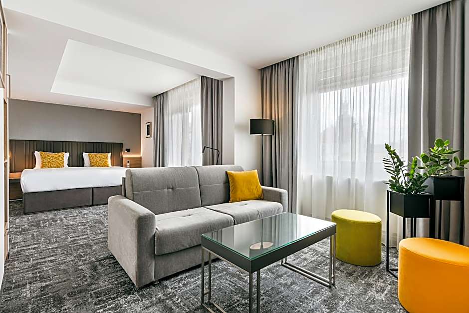 The air-conditioned suite features 1 bedroom and 1 bathroom with a bath and a shower. The suite offers soundproof walls, a mini-bar, a tea and coffee maker, a flat-screen TV with satellite channels, as well as city views. The unit offers 1 bed.